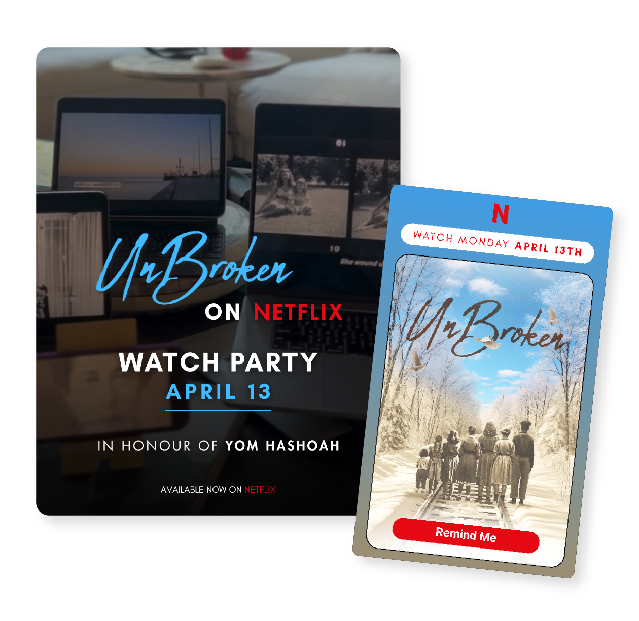 Plan your watch party during the week of Yom HaShoah - April 13th, 2026!